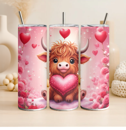 Cute Valentines Day Highland Cow 20oz Stainless Steel Tumbler